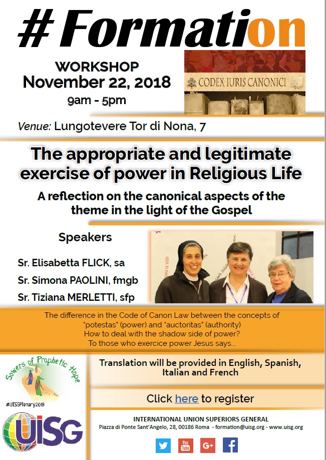 30Oct2018 The appropriate and legitimate exercise of power in Religious Life News 2 Comments The appropriate and legitimate exercise of power in Religious Life Workshop: November 22nd at UISG