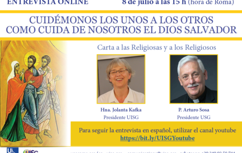 Cuidémonos los unos a los otros como cuida de nosotros el Dios salvador Entrevista Online con los Presidentes UISG e USG que han enviado una carta a todas las religiosas y religiosos 8 de julio 2020 Para seguir la entrevista en español, utilizar el canal youtube https://bit.ly/UISGYoutube