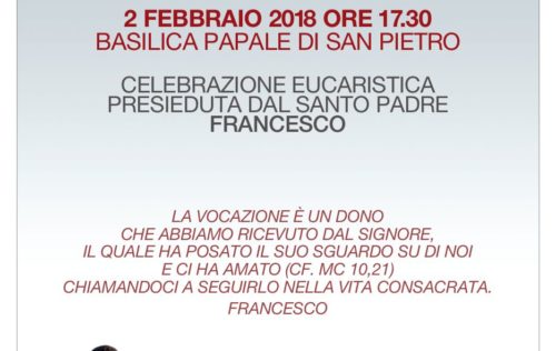 2 febrero 2018: Jornada Mundial de la Vida Consagrada