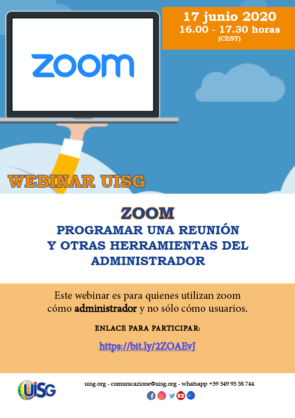 05Jun2020 ZOOM PROGRAMAR UNA REUNIÓN Y OTRAS HERRAMIENTAS DEL ADMINISTRADOR Noticias No Comments ZOOM PROGRAMAR UNA REUNIÓN Y OTRAS HERRAMIENTAS DEL ADMINISTRADOR 17 junio 2020, 16.00 – 17.30 horas (CEST) ENLACE PARA PARTICIPAR: