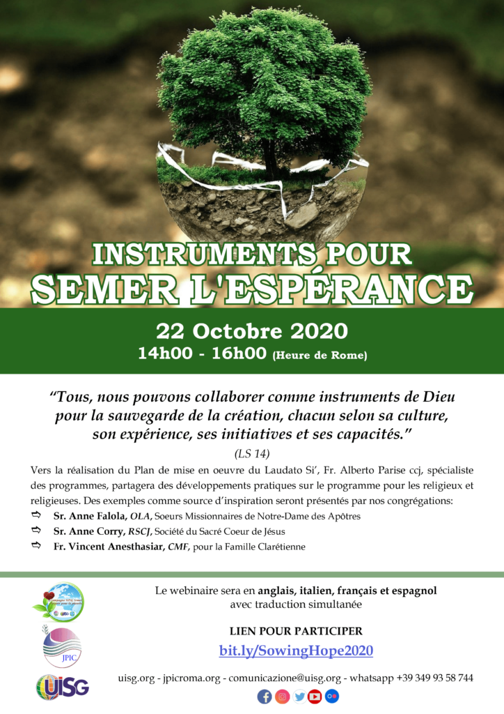 Date: Jeudi 22 octobre 2020 – de 14h00 à 16h00 (heure de Rome)