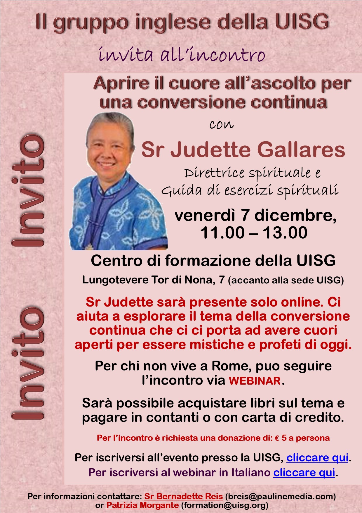 Cliccare qui per iscriversi all’incontro presso la UISG