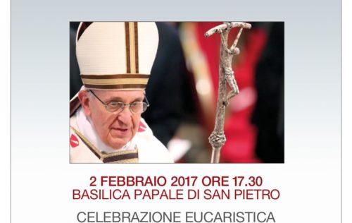 CONGREGAZIONE PER GLI ISTITUTI DI VITA CONSACRATA E LE SOCIETÀ DI VITA APOSTOLICA XXI GIORNATA MONDIALE DELLA VITA CONSACRATA Città del Vaticano, 25 gennaio 2017 Il 2 febbraio p.v., giorno in cui la Chiesa fa memoria della presentazione di Gesù al tempio, alle ore 17.30 nella Basilica Papale di S. Pietro avrà luogo la Celebrazione Eucaristica presiedutaRead more…