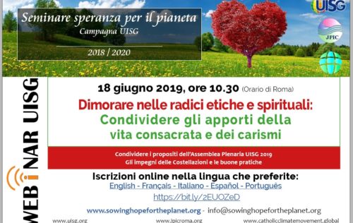 Impegnandosi nella Piattaforma di iniziative Laudato Si’ 14 gennaio 2022 dalle 14:00 alle 16:00 (ora di Roma) “Unire tutta la famiglia umana (…), poiché sappiamo che le cose possono cambiare.” (LS 13) Programma: Messaggi dei Co-Presidenti della Commissione GPIC USG-UISG, Sr. Noelle Corscadden, IBVM e P. Paulus Budi Kleden, SVD Approfondire la nostra comprensioneRead more…