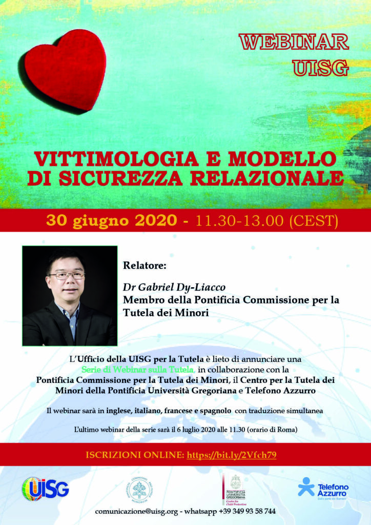 25Giu2020 Vittimologia e modello di sicurezza relazionale Notizie No Comments Vittimologia e modello di sicurezza relazionale Serie di Webinar sulla Tutela 30 giugno 2020 – 11.30-13.00 (CEST) (per verificare l’orario del tuo paese clicca qui) ISCRIZIONI ONLINE: