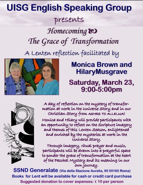 12Feb2019 Lenten Reflection in Rome News 2 Comments Lenten Retreat “Homecoming: The Grace of Transformation” March 23th, Rome Register here