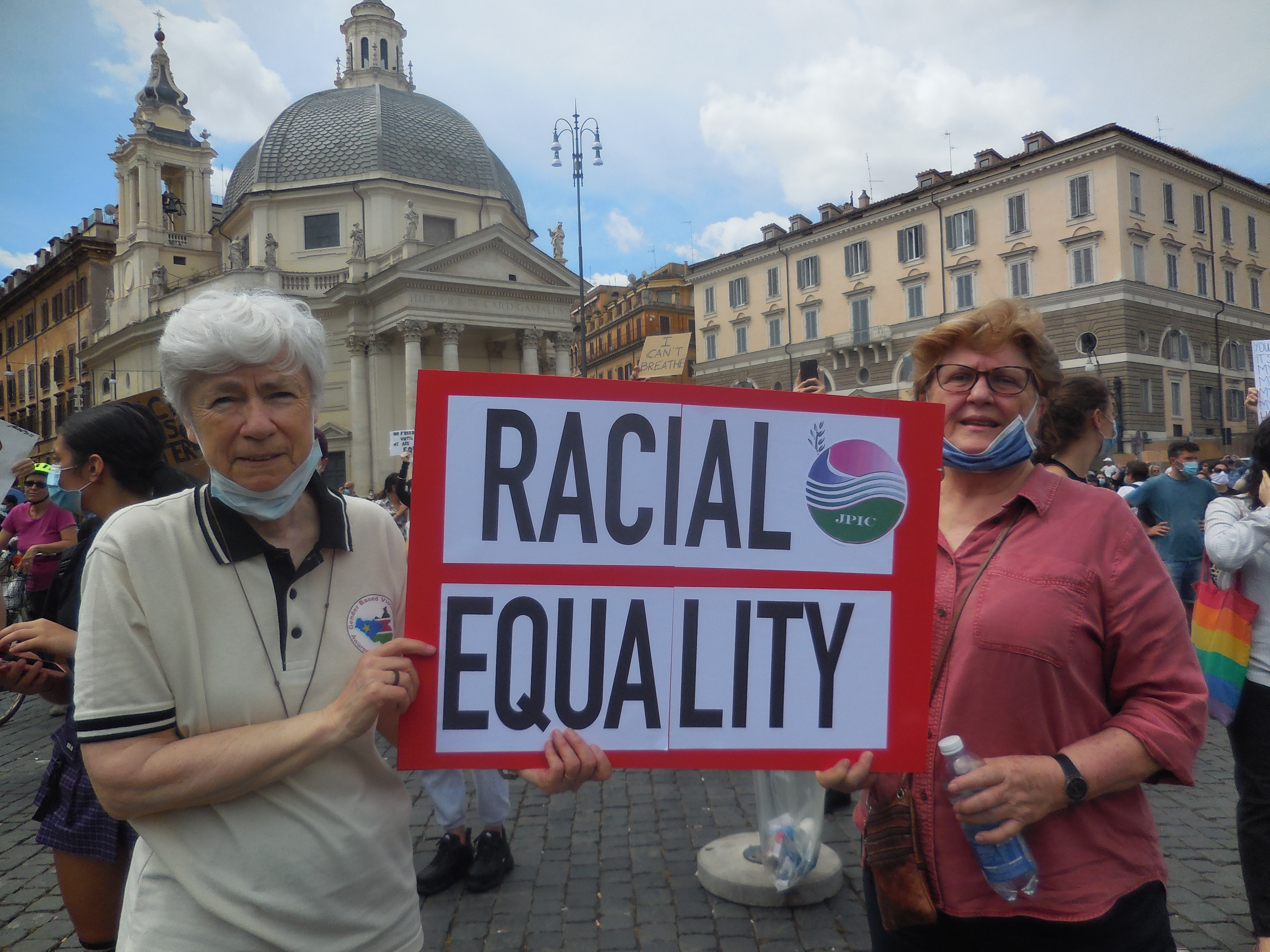 Sr Sheila Kinsey, Co-Secretary of the UISG USG Justice, Peace and Integrity of Creation Commission, participated the protest against Racism in Rome.
