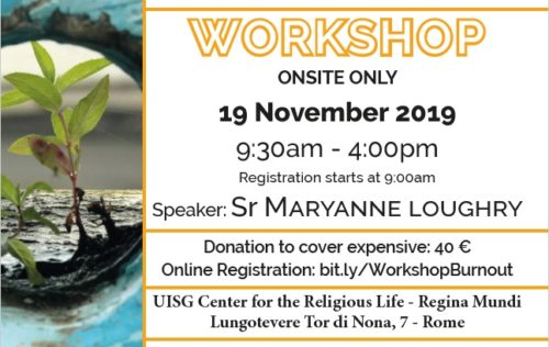 Workshop only onsite Burnout Prevention and Resilience Building in Religious Life November 19 9:30am – 4:00pm Register online: