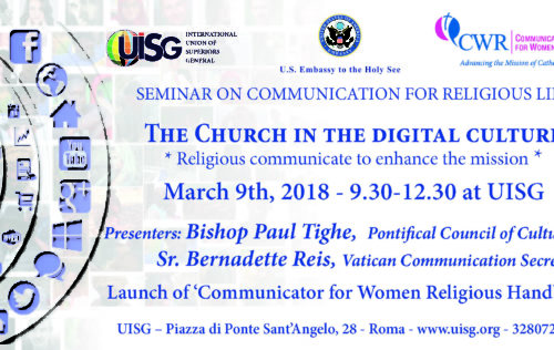 COMMUNICATING THE MISSION IN THE DIGITAL SPACE Basic Communication Course for Consecrated Life Rome, March 9-10, 2018 Friday, March 9 from 9:30am to 6:00pm Saturday, March 10 from 9:00am to 5:00pm At UISG, Piazza di Ponte Sant’Angelo, 28 Click here to register Click here to download the programme