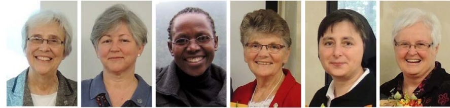 Left to right: Sister Roxanne Schares (USA), General Superior; Irmã Inês Camiran (Brazil), General Councilor/Vicar; Sister Carolyn Anyega (Kenya), General Councilor; Sister Julianne Lattner (Canada), General Councilor; Sestra M. Martina Radež (Slovenia), General Councilor; Sister Kathleen Storms (USA), General Councilor Installation: January 20, 2018 at the Generalate, Rome, Italy.