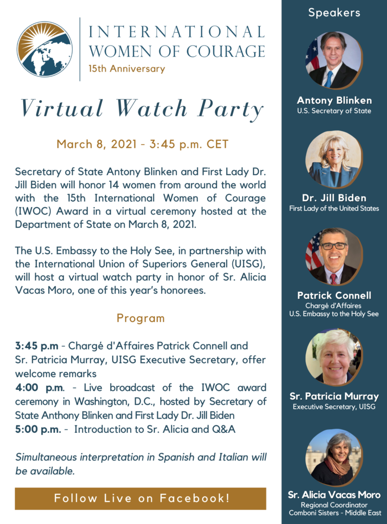 US Embassy Holy See fb page: https://www.facebook.com/holysee.usembassy or Youtube UISG Streaming: http://directenglish.uisg.link